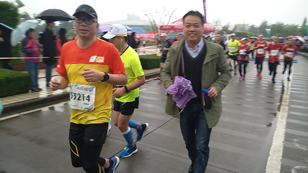 早上7点半,附件部啦啦队志愿者们便集合,统一乘车出行。沿途中,大家显得很兴奋,车内满载歌声与欢笑。经过一个小时的车程大家顺利到达目的地,开始进行志愿服务。早起春季的小雨还是能带来丝丝凉意,千万条细丝,荡漾在半空中。迷迷漫漫的轻纱,如丝的小雨从空中降落,雨点是那样小,雨帘是那样密,给道路两旁披上蝉翼般的白纱。雨丝很细,很绵,像春天飘浮的柳絮。像雾似的雨,像雨似的雾,丝丝缕缕缠绵不断。一霎时,雨点连成了线,从天空中倾泻下来。雨伞也不能完全抵御雨水的浸袭,习习的凉风带着雨水打湿了衣角,浸透整只鞋子乃至裤边。但现场的工作人员们热情不减。抵挡不住志愿者们的热情。他们的脸上洋溢着热情的笑容,赛道两旁高声欢呼着“激情马拉松,幸福东航,快乐奔跑,奔向幸福”。选手赵宝峰在跑半程的途中,附件部生产技术党支部书记程剑在大雨中,场外陪同跑步数百米,冒雨前行,为选手加油打气,以鼓励选手坚持到底就是胜利。最终赵宝峰在志愿者们的欢呼声中临近终点又一冲刺,以1:55:49.18的优异成绩跑完了规定路线获得荣誉,得到奖牌。在一片热烈的现场气氛中,附件部其他两名队员也均获得了奖牌。