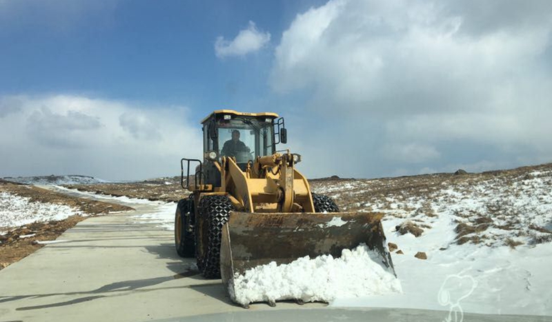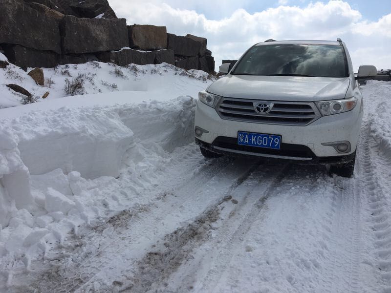 在周一,蛮汉山雷达站周日红台长已经安排人员,提前一天进行了一次推雪开路的工作,但是由于积雪结冰严重,清障工作没有完成,只能周二早晨继续进行。因此,往常10:30交接班就不可能了,只能推迟到下午。13点,周日红台长收到前去清障的邢海滨报告,道路清障工作即将完成。周日红台长放下手中饭碗,马上准备车辆,亲自驾驶,载着换班的我和冯日胜师傅,以及凉城县供电局供电线路维修人员,向蛮汉山雷达站进发。