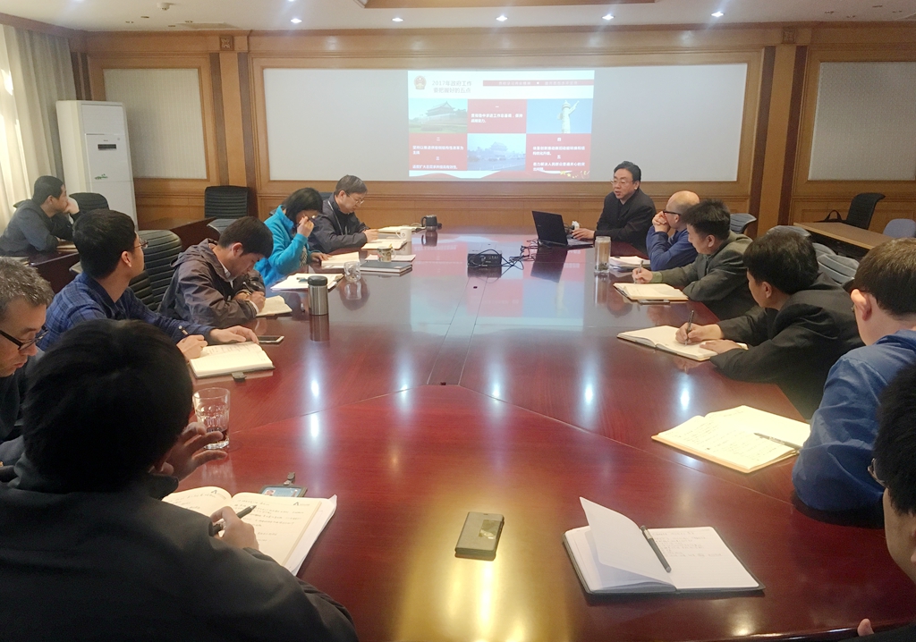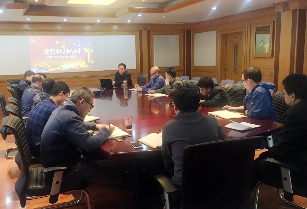 为进一步加深对2017年《政府工作报告》的理解和掌握,努力做到吃透精神、领会精髓,4月14日,华北空管局气象中心党委召开中心组扩大学习会议。气象中心党委书记甄广炬以“撸起袖子加油干——2017年政府工作报告解读”为主题,深入浅出向与会人员讲解怎样把“政府工作报告精神”转化为实打实具体行动的党课。