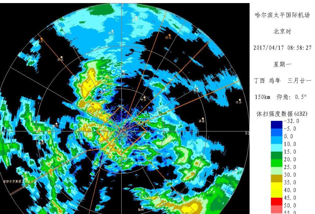 16日傍晚,预报员在通报局长值班室的24小时天气趋势表中,预报了17日将出现短时的雷暴天气。17日06时,考虑到回波面积较大,强度偏弱,预报员首先做出了以小到中阵雨并伴随大风的天气结论,同时考虑到局地伴有对流云。在08时发布终端区天气预警,并提醒塔台管制室等用户。08时35分值班预报员密切监视天气演变,结合最新雷达回波图等资料积极会商天气,得出本场近时将会有雷暴发生,值班预报员各司其责的开展相关的对外服务及信息通报工作,立即发布修订预报和机场警报,结论为09时至11时本场短时伴有中雷雨天气。