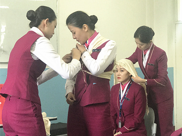 为了熟练掌握应急医疗知识及技能,乘务员们除初始培训要进行医疗课程的细化学习,每年还要进行复训以增加熟练程度。