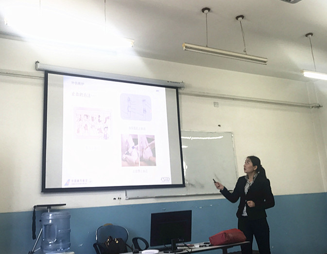 这不是一场突如其来的急救,而是乘务员们在认真的参加应急演练的应急医疗课程。