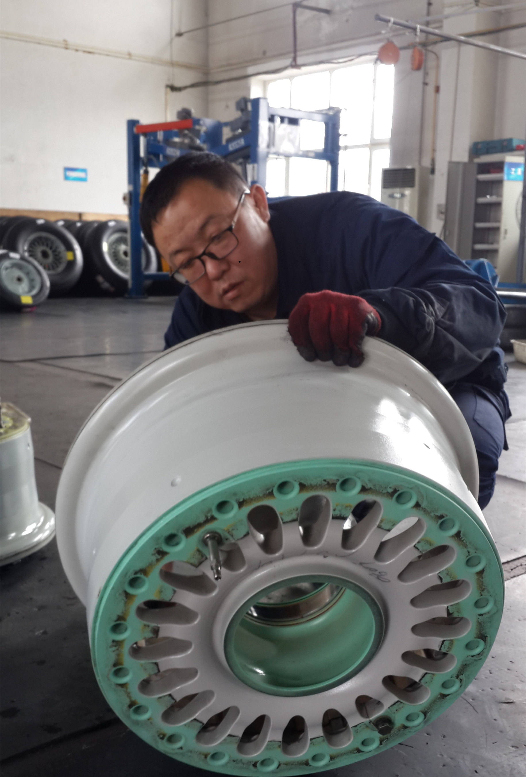 有一次,航线送来一个磨损尚未到标的机轮,待修牌上写的是轮胎气压低。我们按工作单要求首先对轮胎进行分解,然后由探伤室的同事来探伤,探伤室的同事拿来探伤仪器在轮毂边缘探了两遍说没问题,没有发现裂纹。可我师傅觉得不可能呀,好端端的轮子怎么可能气压低,而且变化不是很明显,以他以往的工作经验不是封圈漏气,就是轮毂问题。他又重新组装更换新封圈,发现隔几天气压还是会降低,他断定肯定是有裂纹。可是明明通过探伤测试了呀,不肯罢休的他就一直对着那个轮毂仔细的看。看着看着,还真叫他看出问题来了,他发现封圈封严处有一个黑点,怎么擦也擦不掉,他觉得有问题,又叫来探伤人员进行确认。这次探伤后的结果确认此处是一个沙眼般的腐蚀。这事让我们都对二师傅由衷的佩服,大家都说二师傅长了一双“电眼”。之所以初次探伤没有发现这个点是因为工艺上没有要求对封严区域探伤,而后因为这事,探伤室也将工艺中的漏洞进行了弥补,将这个区域也列入每次轮毂探伤必须探伤的区域。