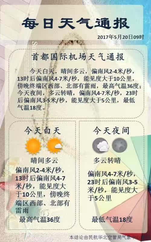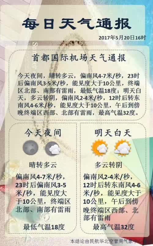 5月20日,“小满”节气的前一天,华北气象自动观测站资料和雷达资料都显示:北京市西部和南部出现雷雨。首都机场2017年雷雨季节的初雷始终没有来,即便当日有雷雨,也已经是首都机场近18年来第二晚的初雷了(目前最晚是2007年的6月3日)。虽然初雷未至,首都机场终端区的雷雨同样对航班飞行造成较大影响,需要预报员坚守岗位,监视实况资料,作出临近预报,为管制和流量管理提供有力支持。