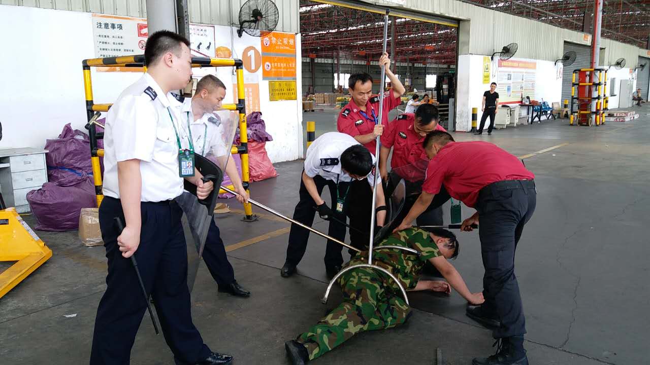白云机场货站安保部开展反恐防暴应急演练 航企通讯滚动 17年5月31日 编辑 A忠诚卫士 取消关注 关注 私信 白云机场货站安保部联合万通护卫开展反恐防暴应急处置演练,提升护卫员针对突发事件的应急处置能力。 反恐演练开始后,一名“暴恐分子”强闯门禁,护卫员迅速向上级汇报情况,并启动紧急应急预案,6名护卫员使用盾牌、钢叉、抓捕器将“暴恐分子”制服,恢复正常秩序。