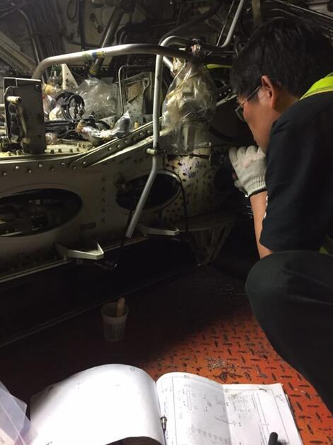 结构修理人员在前期铰孔维修工作受阻后,又沟通空客公司最终决定使用钛板和钢板完成修理的方案。龙骨梁(keel beam)是穿过机身中央翼盒下方的机身纵轴线上的纵梁或盒形结构,是机身结构中受力最大的结构件,一般采用龙骨梁设计的目的是为了保证下端翼大型运输机机身有足够的空间用作主起落架轮舱,对该结构件进行修理难度较大。根据要求,龙骨梁的维修需从构件两侧同时完成改装,由于是首次开展此项工作,东航技术西北定检部在开始做修理前进行了认真的准备。为防止出现纰漏,他们边研究图纸边施工,狭小的起落架舱里钻进4、5个人,一下子变得十分拥挤。但这也没影响到他们各自的工作,现场只听见‘吱吱’电钻声,‘哐哐’榔头声,大家都在全神贯注地做着手中的工作。