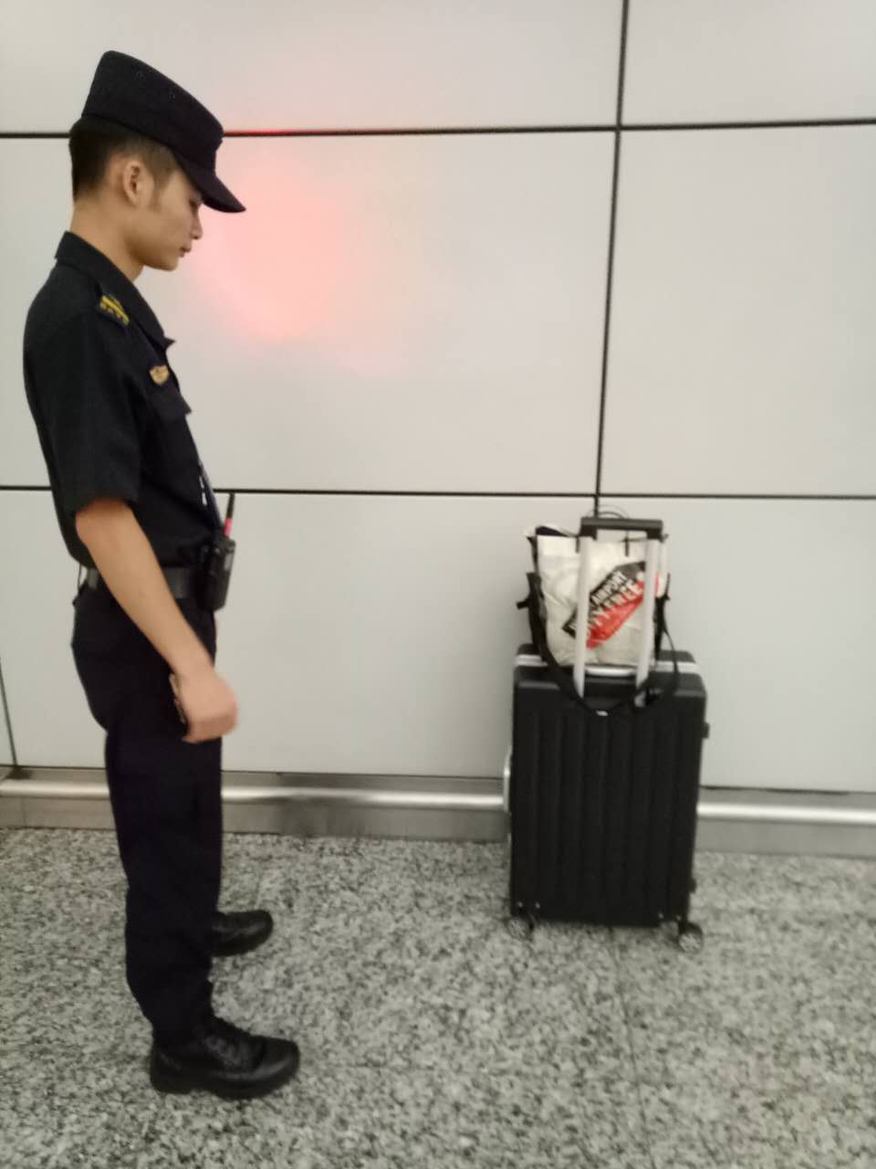 23:20分,安保队员曾广达在岗位上继续巡逻执勤,当巡逻至出发厅F岛附近时,发现一名五十多岁的韩国籍男性旅客似乎在寻找什么,表情非常着急,小曾立即上前询问是否需要帮助,该名旅客表示由于自己喝多了酒,不记得拉杆箱和手提包放在什么位置,由于登机时间临近,找不到行李非常着急,希望能够给予帮助。小曾根据旅客提供的信息想到了半个多小时前处理的无人认领行李,将该名旅客带到了办公室对行李进行核实,当看到自己的行李后该名旅客焦急的脸上露出了笑容,眼角也湿润了,于是才出现了这样的一幕。