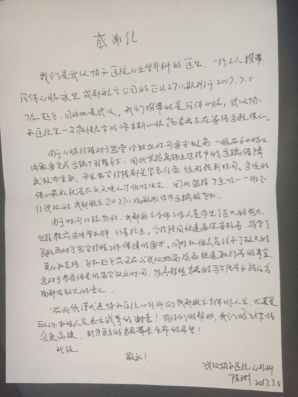 7月5日,是2017年暑运第5天。在这一天清晨,将一颗活体心脏从成都运输到武汉的紧急任务,一场紧急的生命接力,一场时间与生命的赛跑,正在成都航空服务人员的无缝对接、密切配合之下紧张的进行……