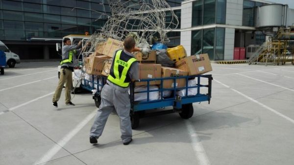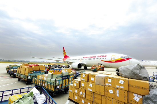 图:南京禄口国际机场:一批出港货物正在装载航班!