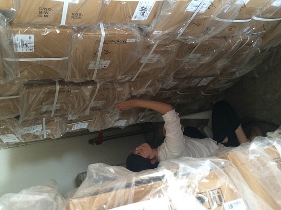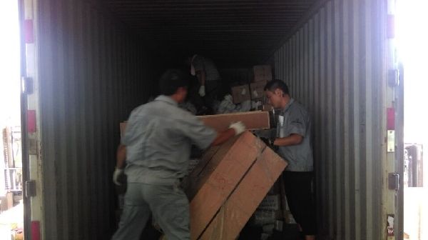 图:这样装国际货物你见过吗? 货运小伙子们你们辛苦了!摄影:张敏!