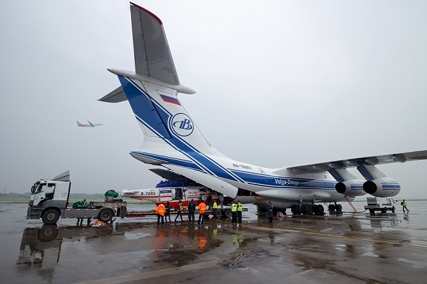 图:南京机场:“肚包机”,这样的“直升机”产品从货舱卸下,货运人是要精密计划、事先预案、周密安排、过得硬的业务技能、大家一起齐心协力完成的!你行吗?摄影:张敏、严晓东!