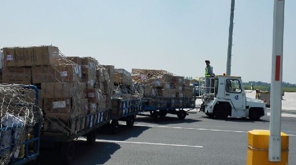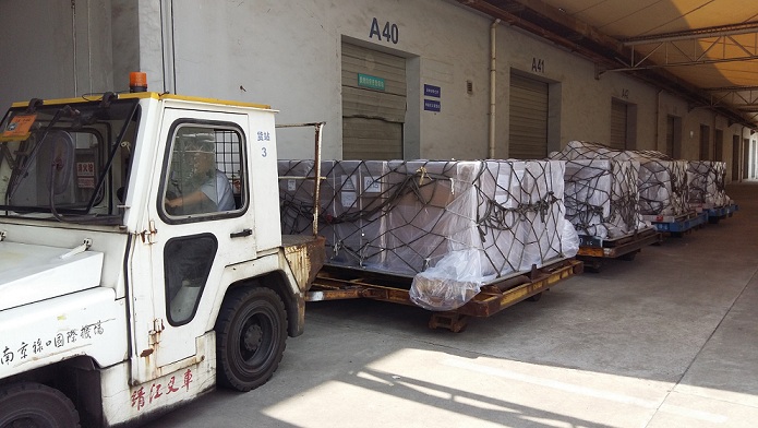 图:南京机场货运人一清早就开始忙碌,截止上午10点,第一、第二批出港国际货物全部入库!等待配上国际航班!摄影:张敏!