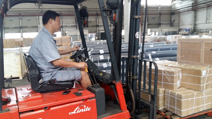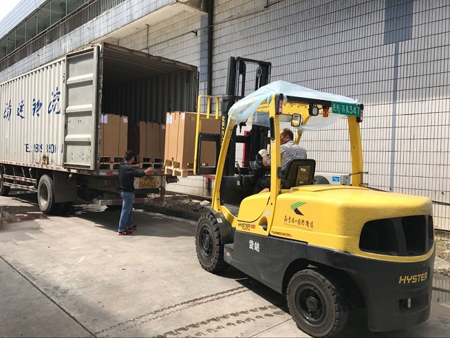 图:南京机场国际货运中心:出港库区一批国际货物将从这里运输至货运机坪!小伙子们慢行,安全第一!摄影:张敏!