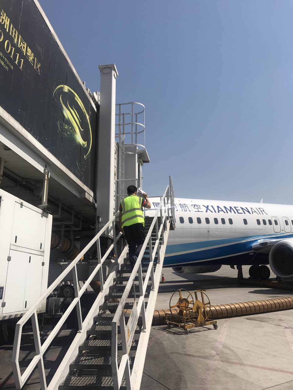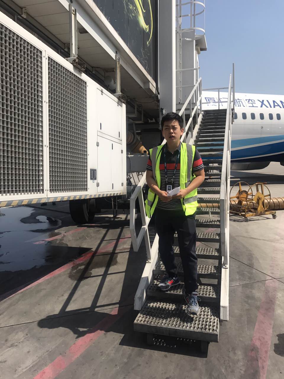 就是这样的一群肩负“知行合一 务必真做”、“争做真情服务使者”信念的西北空管局飞服中心报告室管制员,在气温随随便便五六十度“爆表”的机坪上,顶着烈日骄阳,穿行于水泥机坪上“漂浮”的高温热浪中,在胜似烧烤盘的机坪地面上,因阳光太过刺眼让人睁不开眼睛而从始至终面带“笑得眼睛眯成一条缝”的“笑脸”,迈着矫健的步伐,穿梭于机坪上的各架飞机之间。按照规定,但凡进入机坪内的任何人员必须身着安全反光服,反光服的材料犹如一层“保鲜膜”包裹着本就很闷热的身体,令“跑机坪的”报告室管制员更加炎热,每次回到办公室,背后都被湿透的汗水画出形态各异的汗渍“地图”……
