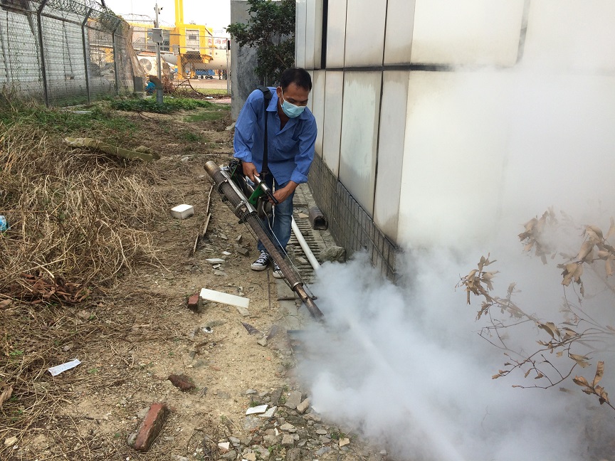 为保证消杀防疫成效显著,珠海空管站后勤服务中心精心组织专业公司技术人员对所属办公楼和航管楼及其外围的污水井、下水井、园林绿化、下水道、垃圾箱、排水沟以及周边的孳生地等进行了消杀;对大楼周边的沟渠、下水道进行疏通,防止积水,填平洼地、翻盆倒罐,消除积水,清理卫生死角,防止蚊虫的孳生。