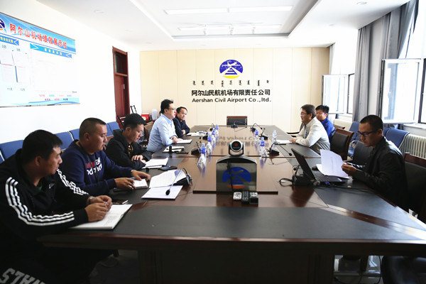 本网讯(阿尔山机场:杨杰 白雪晶报道)为落实冬季除冰雪工作相关要求,提高运行效率,保障航班正常运行,9月7日上午,机务分公司副总经理李忠忠到阿尔山机场交流除防冰工作。阿尔山机场公司副总经理王志刚主持会议,飞行区管理部、航务保障部、安全质量部负责人参加了研讨会。
