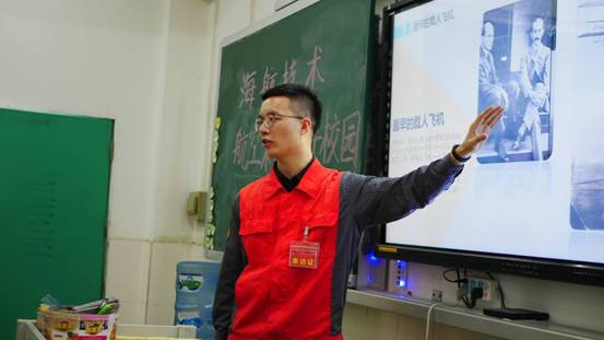 “小朋友们,这边垂直的是方向舵,我们的驾驶员可以用它来对飞机进行小角度的转向操作,比如修正航向。当进行大的转向操作时呢,就需要和这边的升降舵、副翼一起配合完成了……”10月17日上午,在深圳松岗中英双语实验学校的三年级1班讲台上,来自海航航空技术股份有限公司(以下简称“海航技术”)广东维修基地的航空科普大使正热情细致地跟孩子们讲解飞机知识。