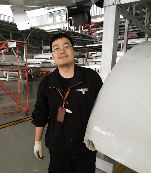 自从2008年入职以来,田飞已在东航技术西北分公司工作了9年有余,他已从一名懵懵懂懂的新工成长为一名技术能手、管理能手。9年多来,我们经历了西北定检部的从小到大,从弱到强;从以前只能容纳一架飞机,到现在可以容纳六架飞机同时停场工作现代化机库。我的同事田飞就是在这巨变的9年中迅速成长起来的,他先后取得了维修人员基础执照,整机放行授权,试车授权,并担任主力车间班组长,同时光荣的加入了中国共产党,成为了一名共产党员。
