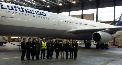 汉莎技术对Ameco此次调研非常重视。在法兰克福基地,负责航线业务的汉莎副总裁Andreas Pakszies先生代表汉莎团队对Ameco的来访表示欢迎。在2天行程中,Ameco调研团队与汉莎技术战略规划、人力资源、质量、创新精益、工程系统、飞机结构和客舱等部门15位经理和高级专家进行了广泛的交流探讨。汉莎向Ameco调研团队介绍了“以人为本”的人力政策和高级人才培养的理念和方法,展示了基于可视化的部件可行性管理、基于成本节约和效率提升的工卡瘦身项目、“维修概念管理”创新工作、维修人员岗位优化设置理念、航线倒班优化模式、无纸化工卡应用等等。期间,Ameco调研团队参观了汉莎技术TCC(技术中心)和创新部。TCC有130名高级工程师,其中有45名DOA工程师。DOA工程师是具有改装设计资质能力的高级别工程师,可以批准结构超差和超手册排故方案。DOA工程师有30%来自高级排故工程师,其他70%的DOA工程师来自不同背景的航空高等院校,经过各方面见习和培训成为DOA授权工程师。TCC培养DOA工程师,使汉莎技术拥有快捷、高效的技术解决能力。而其以先进技术应用为导向的创新工作,也成为引领企业发展的强大动力。