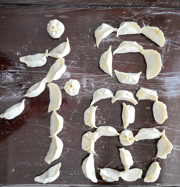 一个多小时后,案板上排满了一排排的饺子,大家来自全国各地,饺子的造型有各自家乡的特色,共同点是每一个都馅大皮薄,充满对一线员工的关爱之情。大家还发挥创意,用饺子摆出各种不同的造型,比如“福”字和空管的logo等。