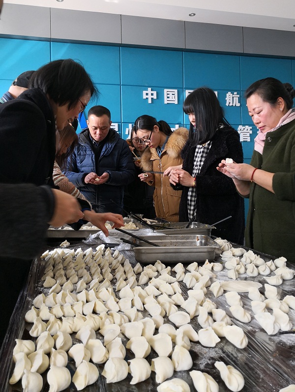 空管站纪委书记、工会主席周小梅带领女职委、后服等相关职能部门工作人员将刚出锅的饺子送到管制、气象和技保等各科室以及机场单身宿舍员工的手中。一盒盒饺子很快被一扫而空,大家吃在口中,暖在心里,对女职工们的手艺更是赞不绝口。
