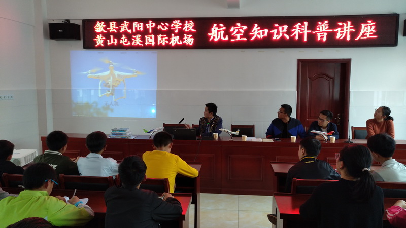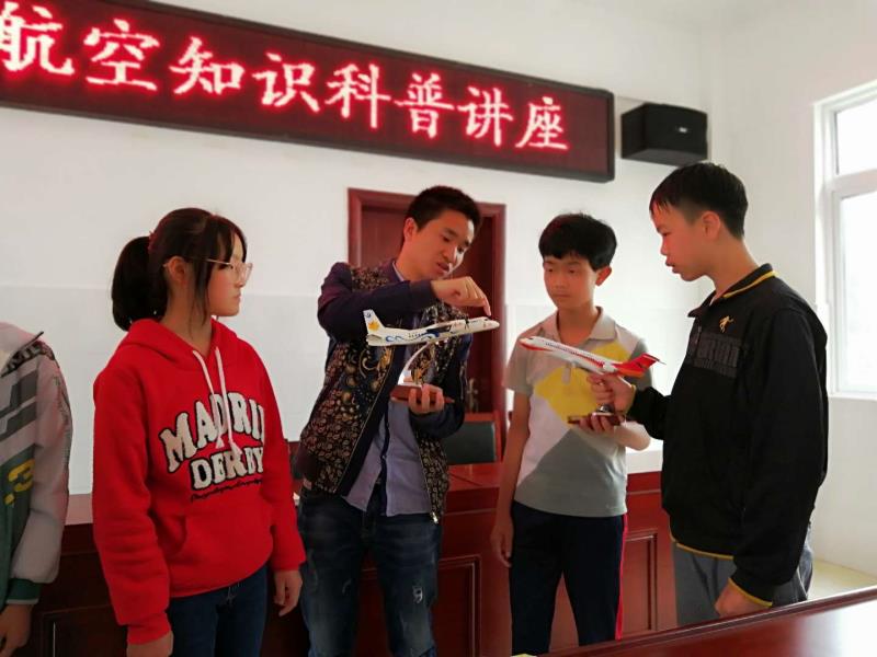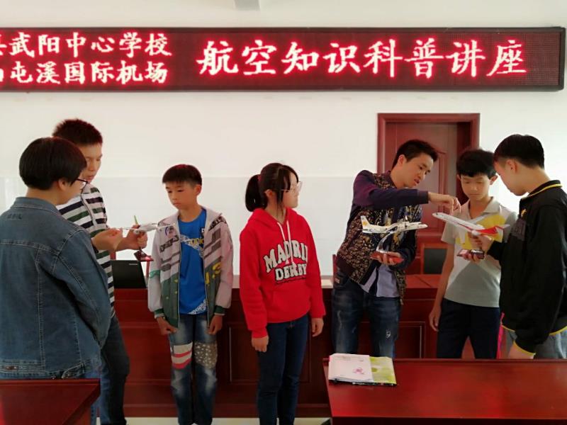 此次结对共建活动,机场团委组织地勤、航务等部门的团员、青年立足岗位特点,结合学生感兴趣的航空知识、社会普遍关注的热点话题,从航空器的发展历史、如何保证飞机安全飞行、国产民航飞机发展情况等方面为师生们上了一堂民航科普微课;并代表黄山机场向武阳中心学校赠送了一批航空科普书籍,以及MA60、ARJ21、C919三款国产民航飞机模型。