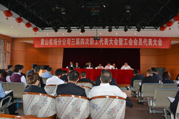 与会代表听取并审议了黄山机场分公司总经理赵鹤平所作的《坚定信心,齐心协力,砥砺奋进,实现黄山机场分公司生产再跨越》的工作报告;听取并审议了分公司纪委书记、工会主席章建华所作的《凝聚员工力量,服务企业发展,为顺利完成分公司年度目标任务而努力奋斗》的工会工作报告;听取并审议了分公司财务部经理陈菲菲所作的《2017年财务决算和2018年财务预算》的财务工作报告。