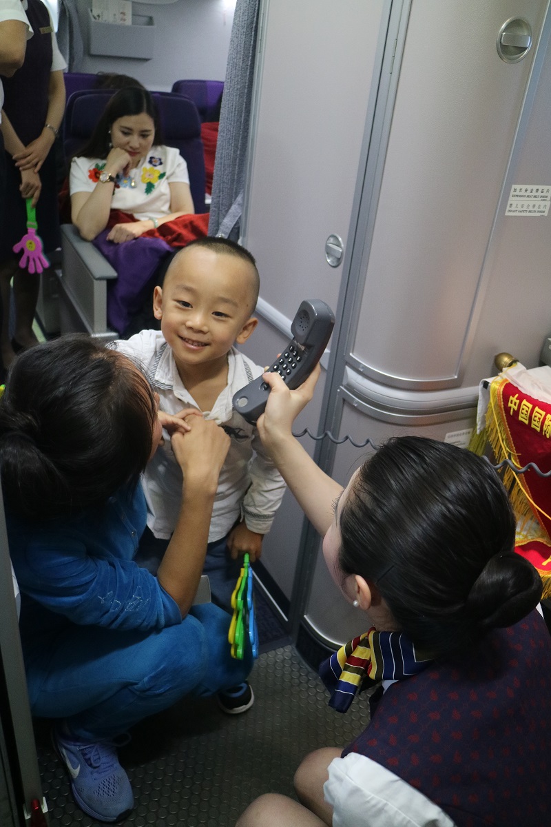 2018年6月1日,当天CA4363(重庆-哈尔滨)航班上,国航重庆分公司祥云班组开展了“在阳光下成长”主题活动,与机上旅客共同庆祝“六一”儿童节的到来。