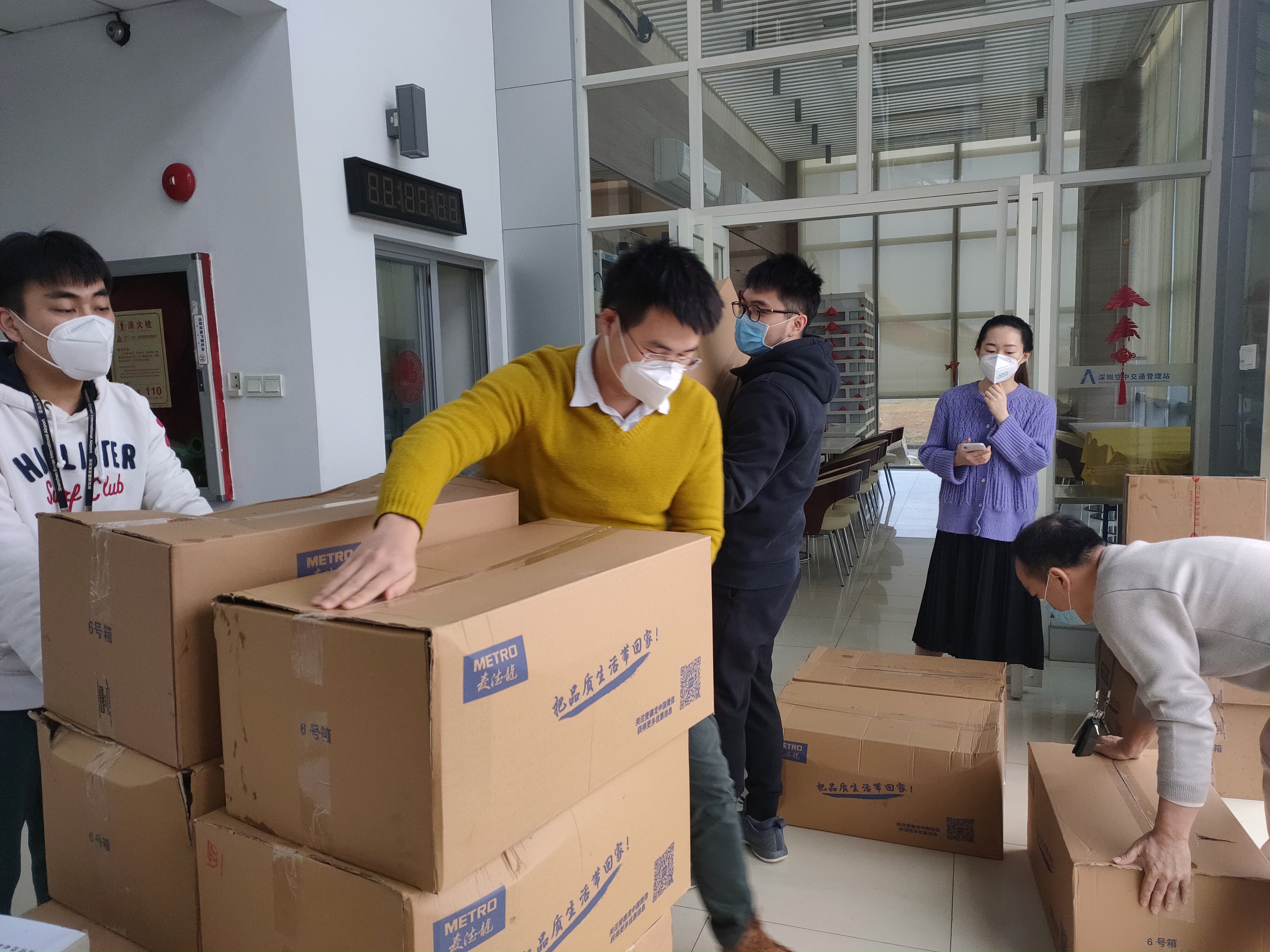 (庞秋媛、赖绮如、郑阳)2月11日,深圳空管站开展抗击疫情慰问一线活动,由党委书记、工会主席陈超带队,给坚守岗位的干部职工们送上包括自热米饭、牛奶在内的81箱慰问品。陈书记传达了习近平总书记2月10日在北京调研指导疫情防控工作的指示精神,鼓励大家提振信心,提高自身防控意识,立足岗位做好本职工作,共同打赢疫情防控的阻击战。空管实业公司也同时开展慰问,将关怀与温暖送到每一个人。