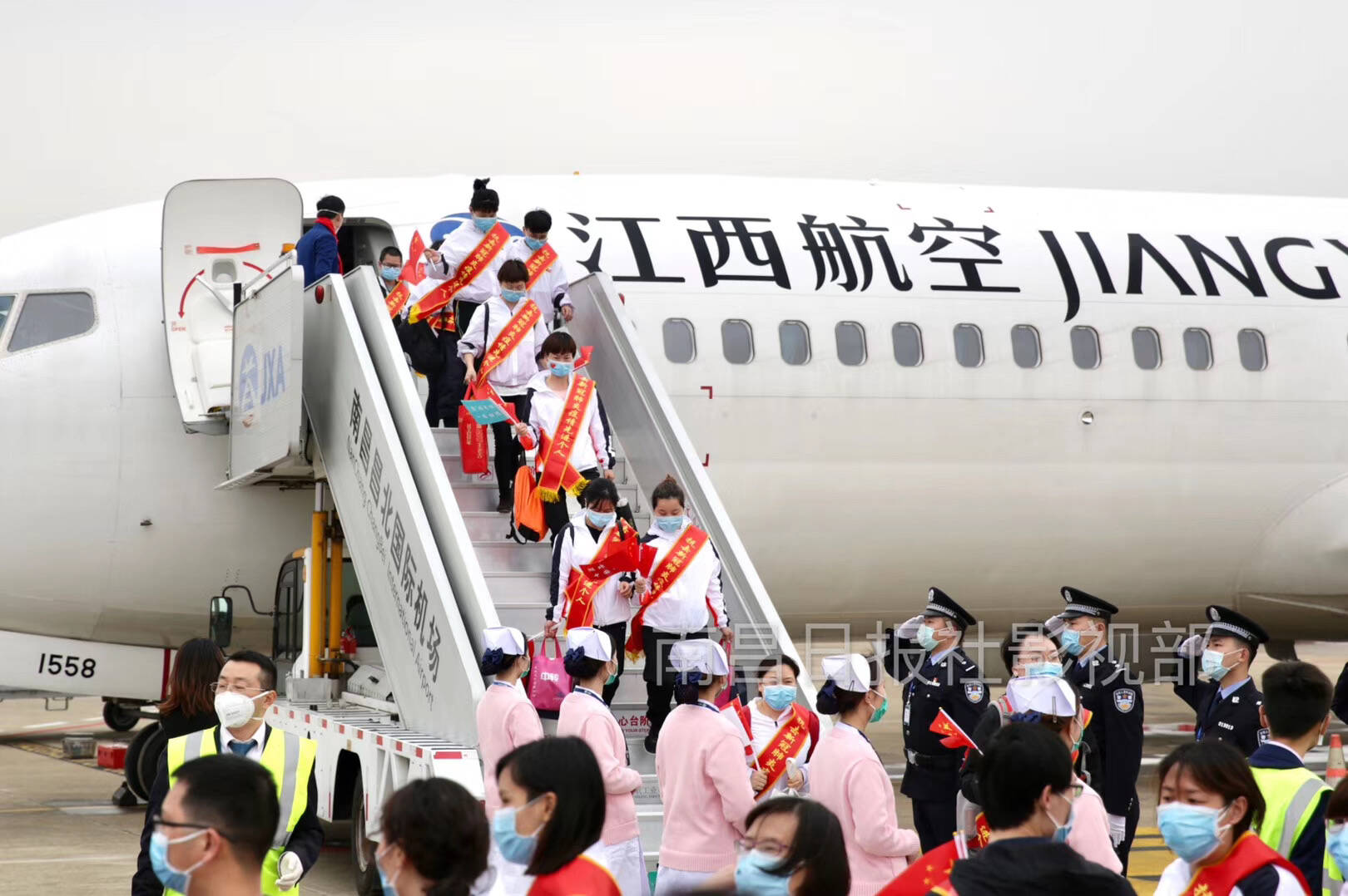 出发时还是天寒地冻,回家时已是春暖花开。能够为你们保驾护航,是我们空管人的骄傲。洪都春至,英雄归来。感恩有你,欢迎回家!