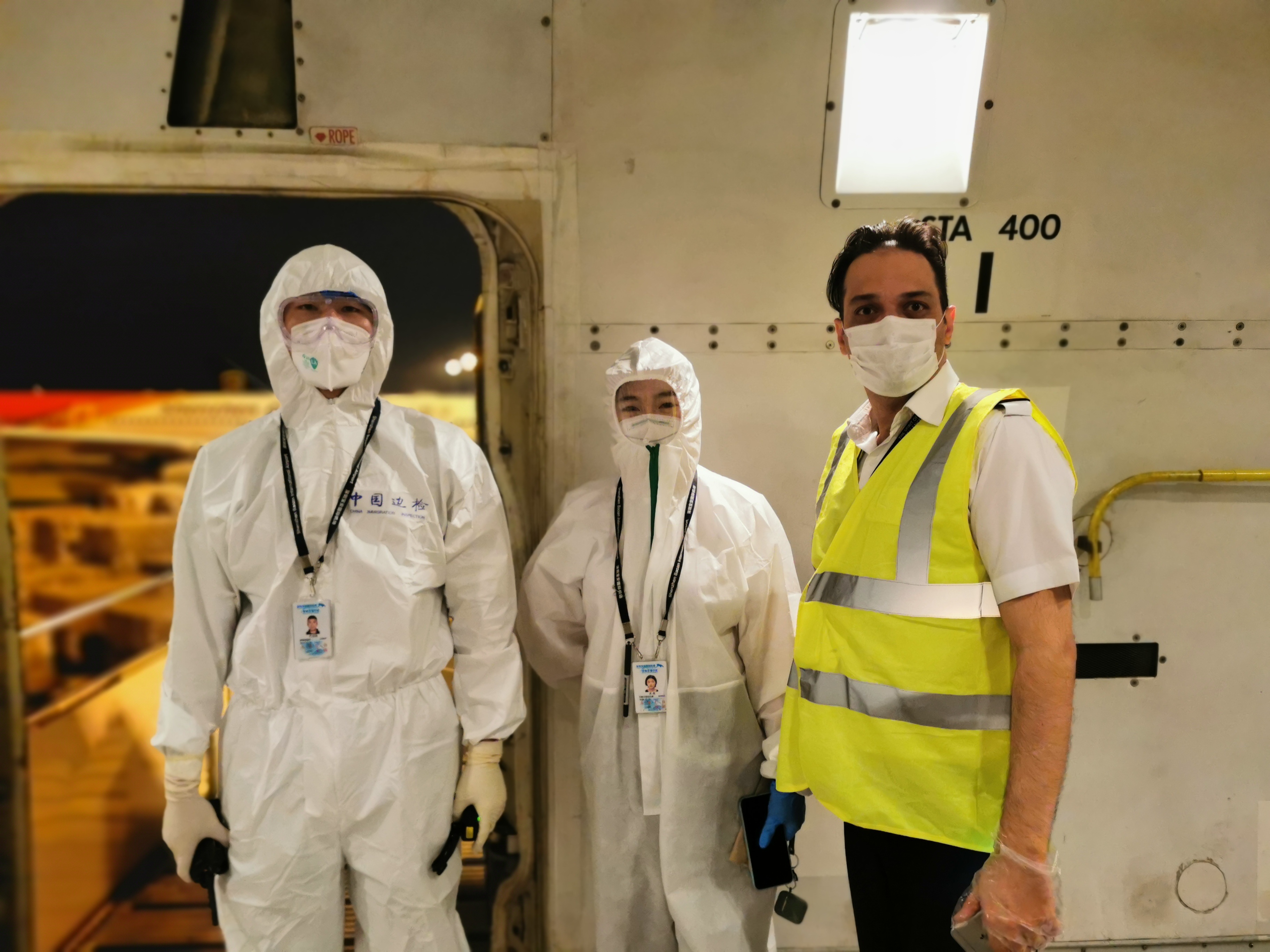 机场是防止疫情的输入的最前线,也是救援物资的集散地。泛亚外航部通常每天需要保障从美国、伊朗等国飞来的定期航班20余架次,3月以来,随着国外疫情的迅速发展,还陆续增加了来自伊朗、俄罗斯、法国、西班牙、意大利等国运送医疗物资的包机任务,病毒的威胁不言而喻,面对风险,泛亚外航部的90后无人退缩,在做好各项防护措施的情况下,为国际航班送上贴心有爱的服务。