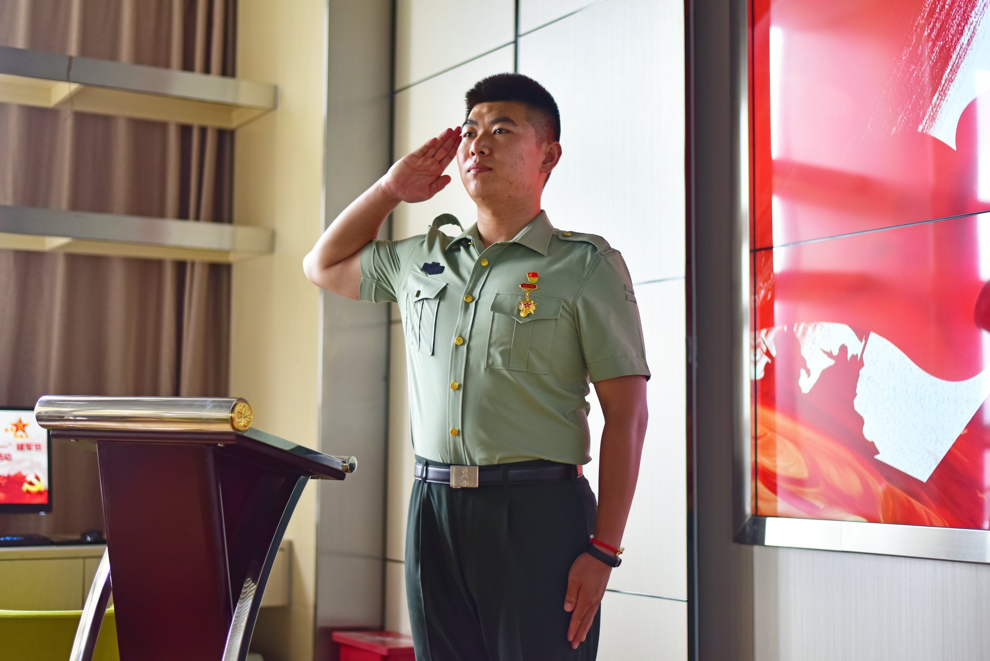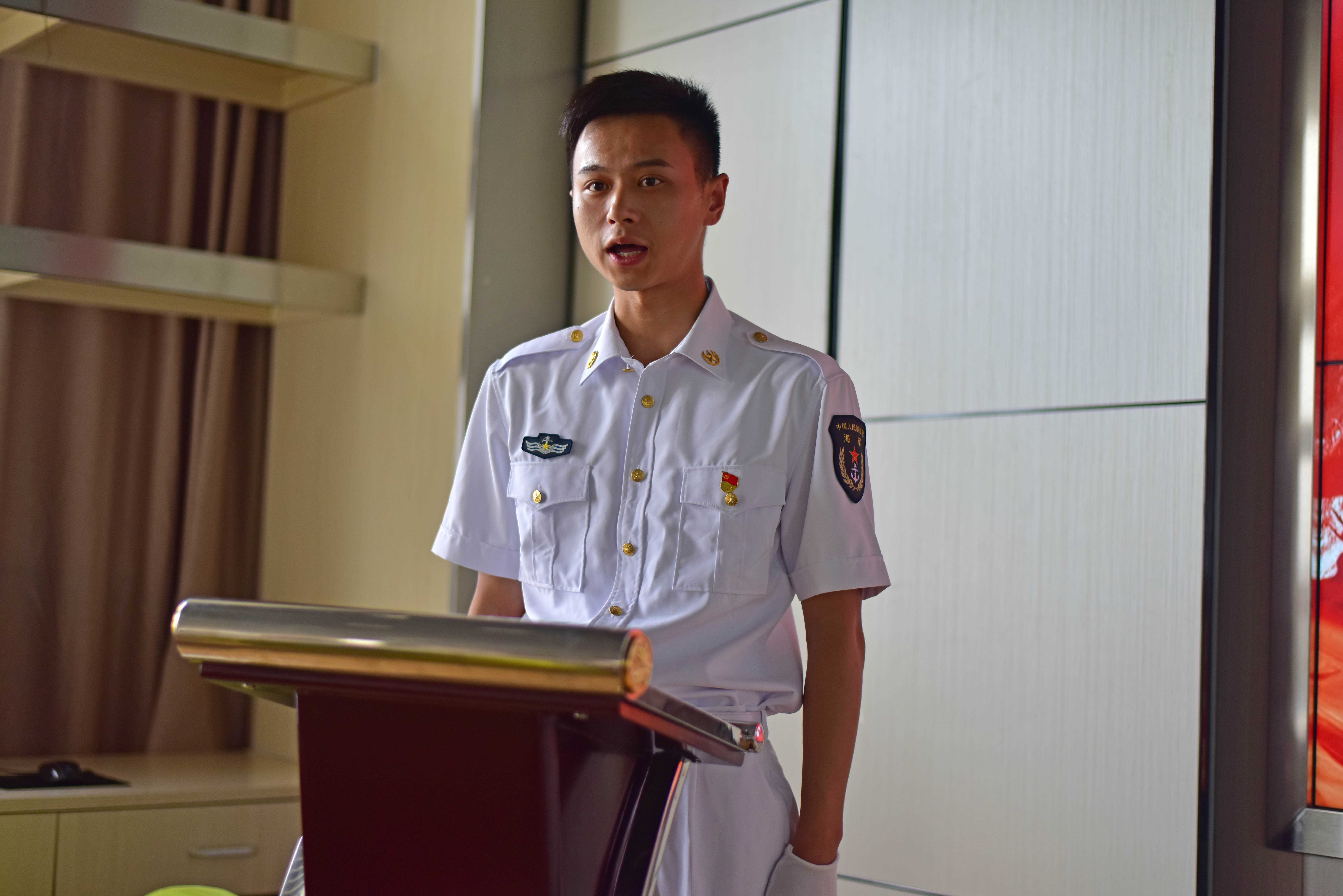 优秀党员刘畅作为曾经有着“白浪花”海军某部队的一员,第一次来到部队时,急训三个月,每天还未天亮的时候,军号就吹响了,寒冬腊月我们就得起来,晨炼跑步、叠被子、打扫卫生、整理内务。每当听到哨音或见到首长的时候首先是立正,然后就是习惯性的跑步、献军礼!作为一名海军战士,每天出海拉练、在船上训练要克服晕船、潮湿及恶劣天气等一系列生理和心理上困难,回忆起起自己的从军经历,他感慨万千,随后他谈到现在国内部分地区的汛情,忧心忡忡,表示作为一名退伍军人他时刻做好了“若有战、召必回”的准备,只要祖国需要,他会毫不退缩、第一时间主动请战,到前线执行任务。