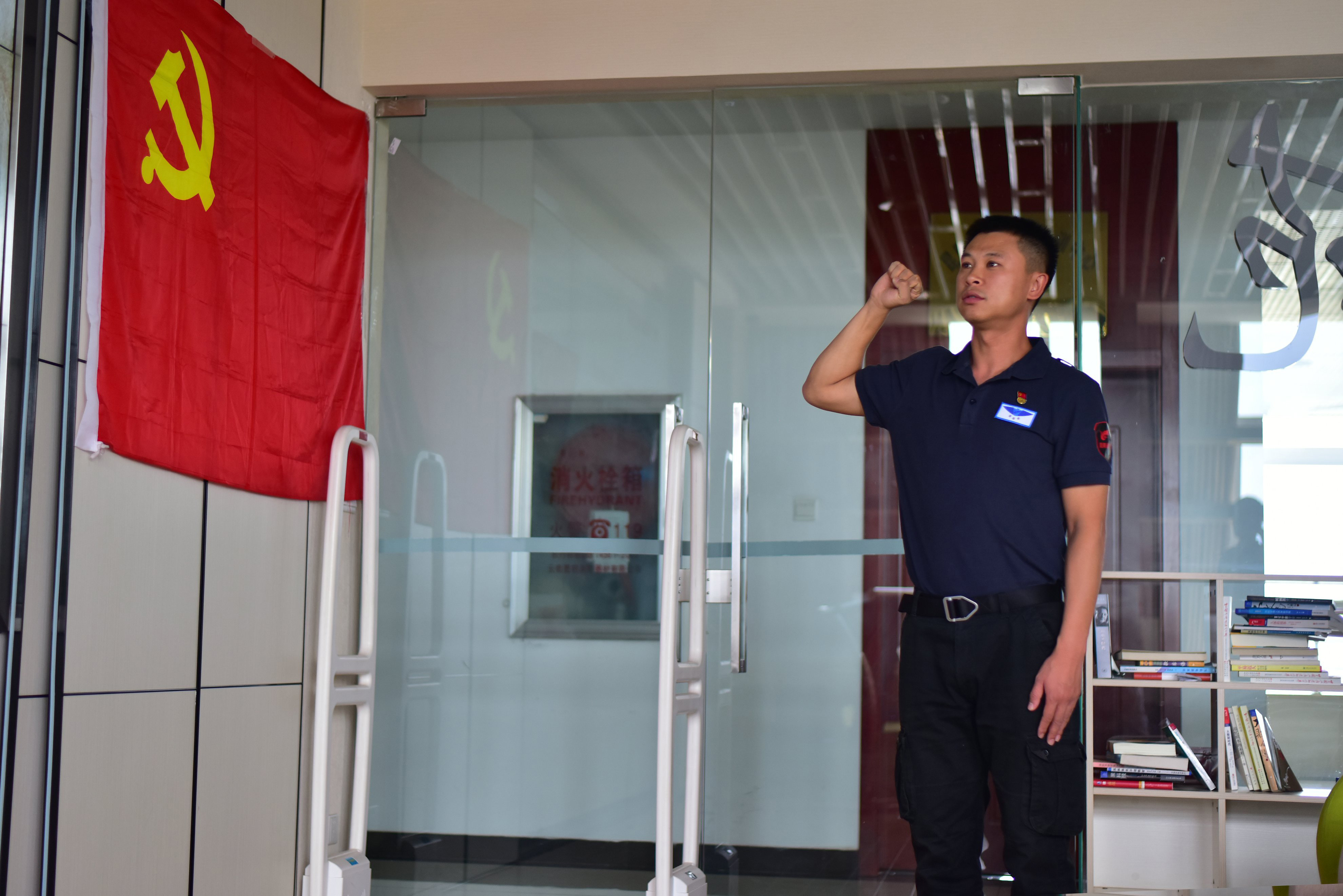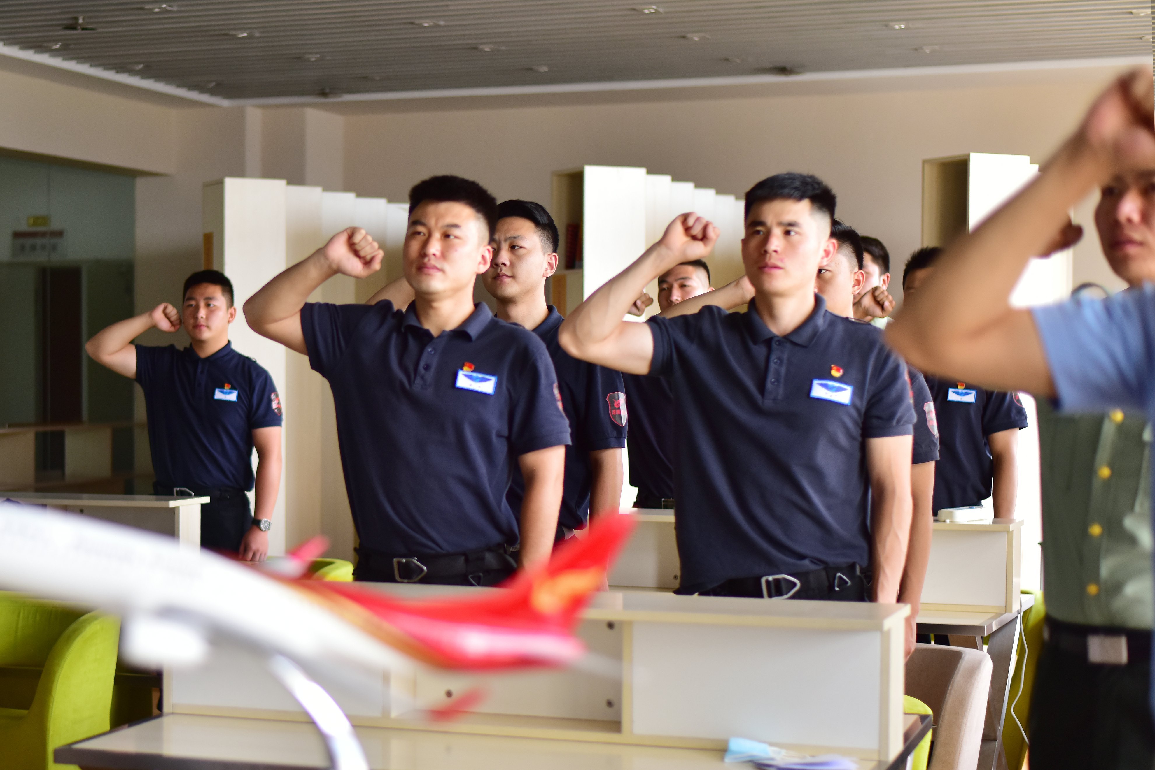 为激励支部广大党员坚定理想信念,不忘初心、牢记使命,增强党组织的凝聚力和战斗力,由客舱保卫党总支书记、保卫部总经理喻海同志带领全体党员重温入党誓词,向党宣誓。