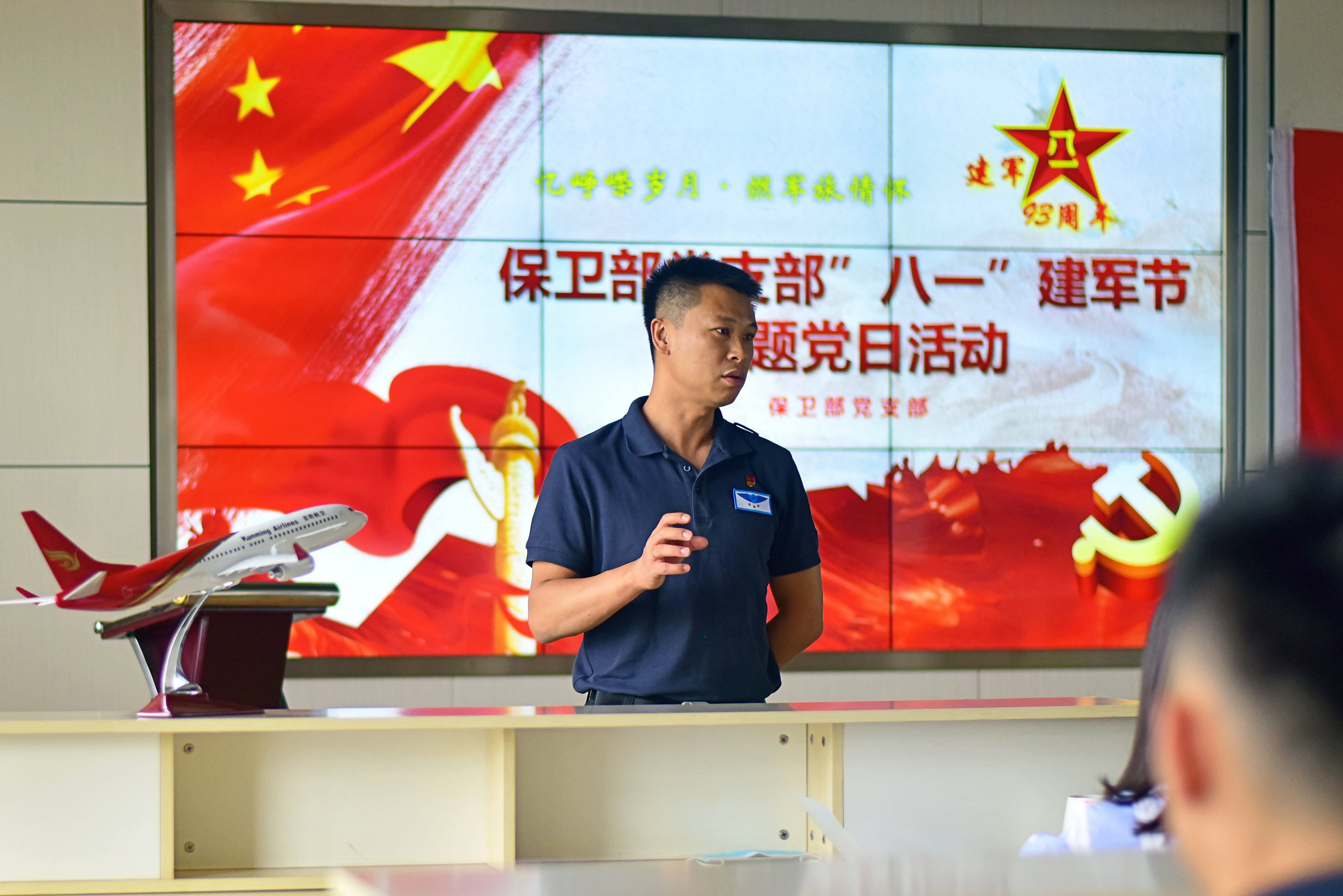 93年前,由中央革命军事委员会将8月1日设立为中国工农红军成立纪念日,以“八一”两字作为中国人民解放军军旗和军徽的主要标志,中华人民共和国成立后,将此纪念日改称为中人民解放军建军节。在2020年“八一”建军节来临之际,昆明航空保卫部党支部集合了“陆、海、空”三个军种以及武警退伍军人代表,策划组织开展了一次特别而又有意义的主题党日活动,退伍军人们带领部门全体党员重温了那段燃情岁月,展现了他们心中的军魂,退伍不褪色,永葆军人本色。