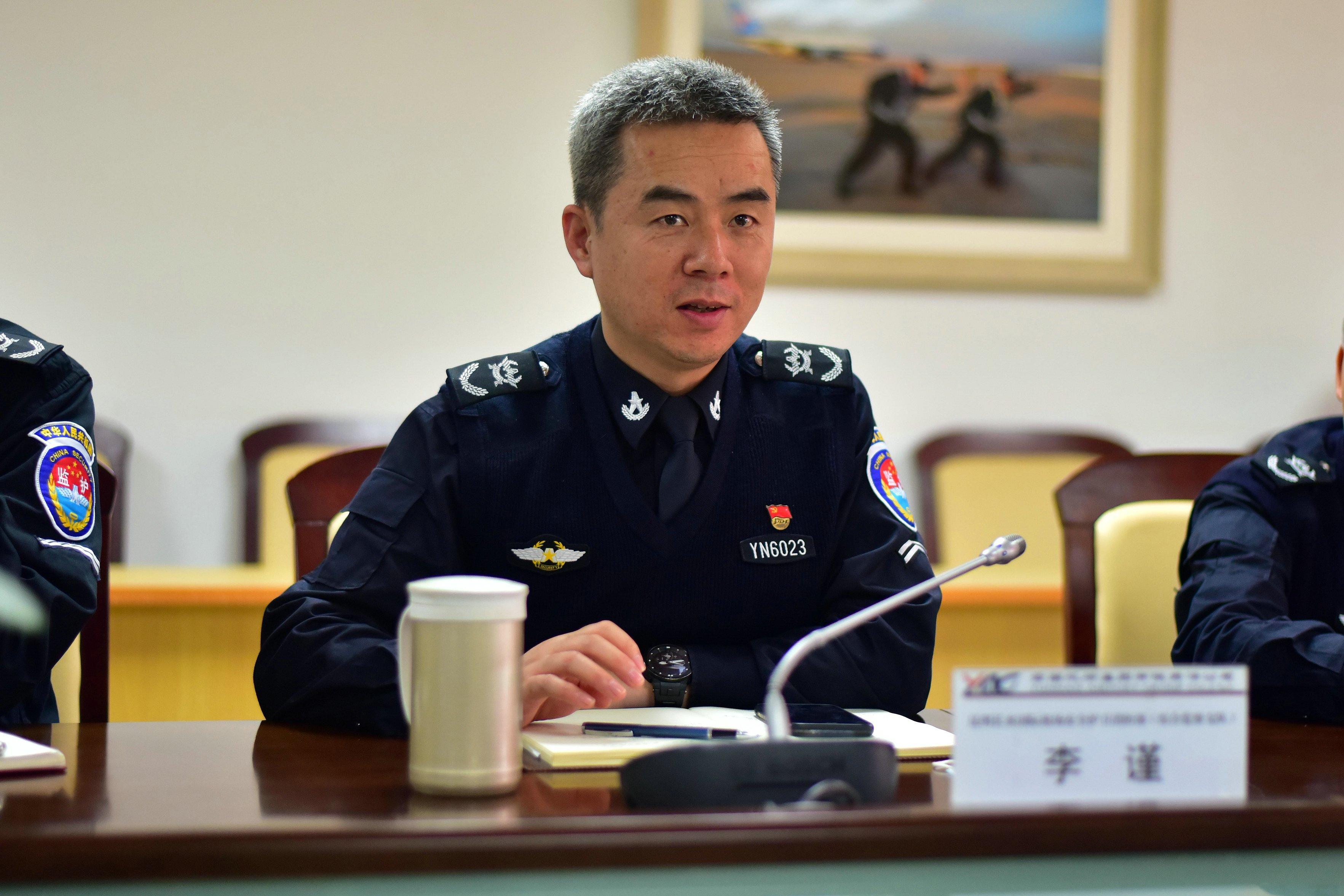 护卫部李谨部长提到三点意见。第一、欢迎昆明航空到护卫部就近期工作开展主题座谈交流,双方只有相互理解、通力合作,才能使存在的问题与困难都能迎刃而解,真正达到共赢的发展局面,最终促进、提升整个长水机场的安保水平。第二,要不断提升应急处置能力,重点针对航空器非法干扰、起火开展联合演练。第三、要高度重视内保管理工作,树立命运共同体意识,加强同昆明机场内保委的工作联动。