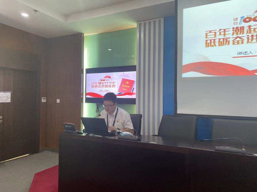 气象台党总支书记朱刚以《重温百年党史 坚定理想信念》为题上专题党课。党课主题鲜明、内涵深刻,重温了中国共产党百年华诞四个重要历史时期和取得的辉煌成就,激发了党员干部的爱国热情,朱刚同志还向大家分享了他学习党史的一些思考,鼓舞大家知史爱党、知史爱国,以更加优异的成绩迎接建党100周年。