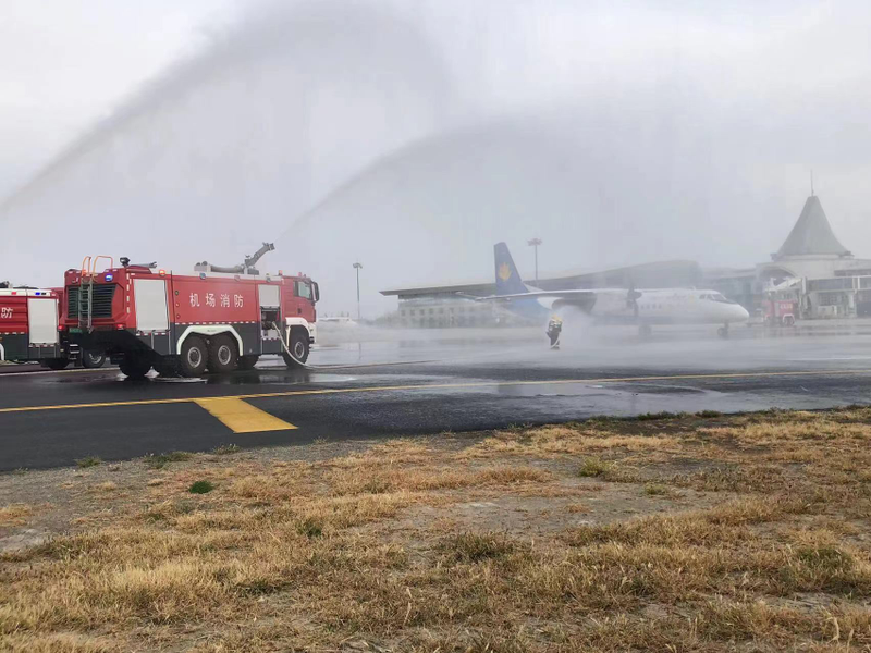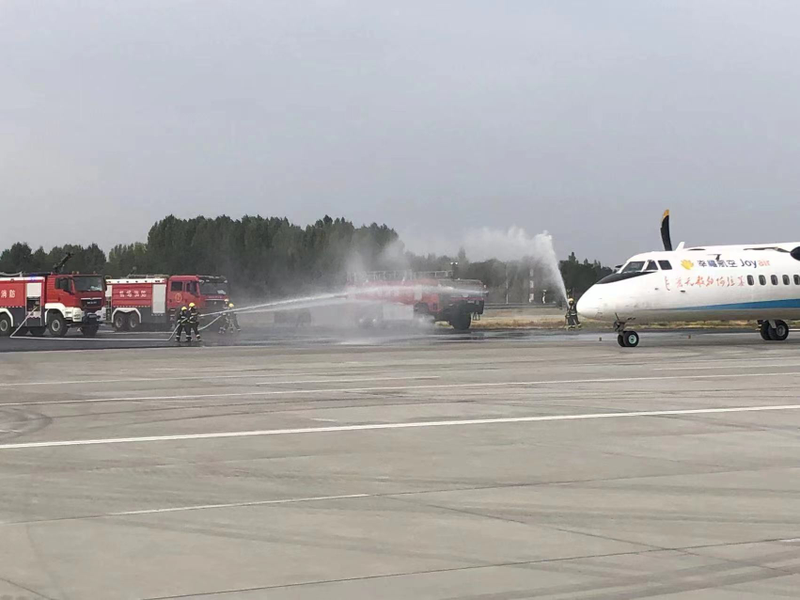 此次演练共用时40分钟, 科目包括:航空器偏出跑道、旅客及机组地面应急撤离、航空器地面火警、残损航空器搬移。出动消防救援车辆共计7辆,其中:快速调动车1辆、主力泡沫车2辆、重型泡沫车2辆、火场照明车1辆、通讯指挥车1辆。