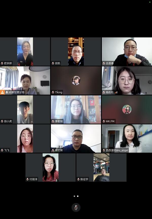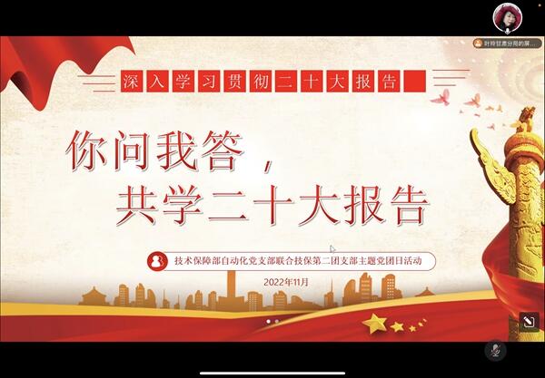 互动方式:自动化党支部书记与技保第二团支部书记分别提问,党团员通过腾讯会议的互动交流区打字作答。