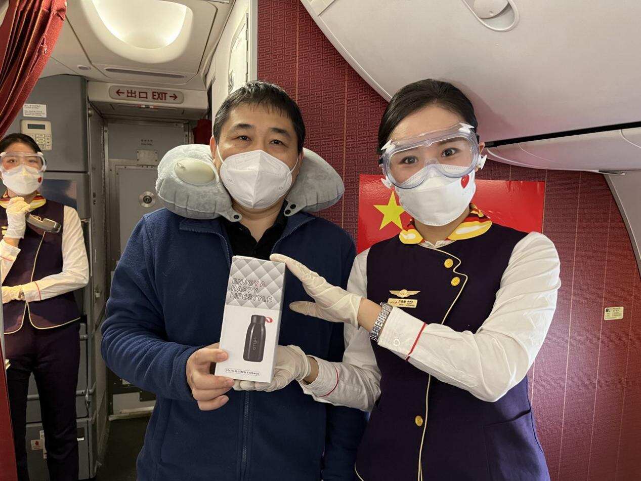 活动最后,乘务组热情地邀请旅客朋友们移步至前舱,大家也纷纷为新海航送出祝福。旅客张先生表示:“希望我们新疆唯一的本土航空公司,能在辽宁方大集团的带领下越来越好,朝着更加优质的方向发展,将我们新疆人自己的航空品牌做大做强!”在旅客朋友们此起彼伏的祝福声中,主题航班活动圆满结束。随着落地广播的响起,飞机平稳落地。乘务组为每一名旅客送上主题航班活动的感谢信,感谢每一位旅客在这一年中对新海航的陪伴与支持,感谢大家坚定不移地选择与热爱重新出发、熠熠生辉的新海航。