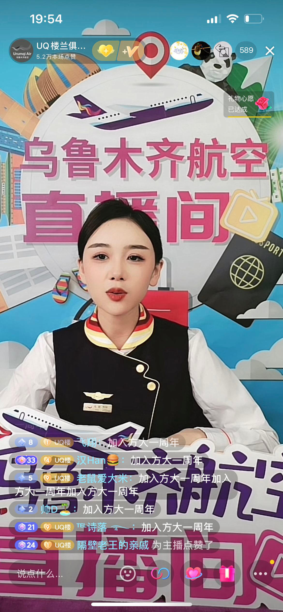 “加入方大一周年”、“新海航 未来可期!”、“新海航服务品质顶呱呱!”...UQ楼兰俱乐部抖音直播间内,观看直播的粉丝通过弹幕纷纷送出对新海航的点赞和祝福。2022年12月7日、8日,乌鲁木齐航空客舱乘务员精英主播团队通过官方抖音直播账号连续开展2场“新海航一周年 感恩有您”直播活动。直播活动期间,通过精心设置新海航大事记简介、新疆美食和农特产品销售、专属定制文创产品送不停等环节,与长期关注新海航的忠实粉丝共同庆祝加入辽宁方大集团一周年,传播新海航正能量,发出新海航好声音。