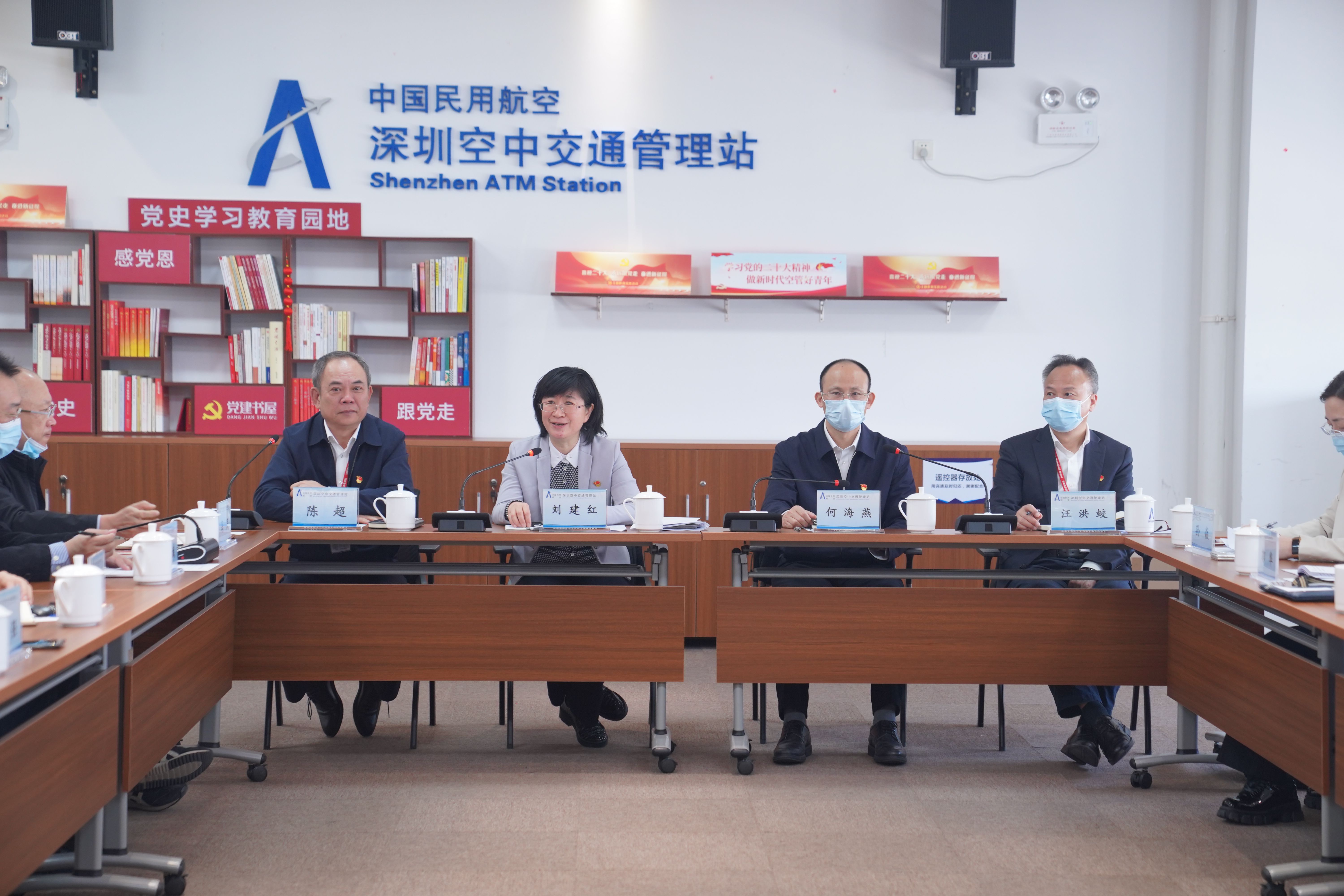 随后,刘建红与深圳空管站党委班子、站直属党总支部书记和纪检委员以及塔台一室的党员进行了座谈交流。塔台管制一室党支部对人员队伍、党建工作等情况进行了专题汇报,深圳空管站党委简要介绍了空管园区规划以及深圳机场三跑道扩建空管工程建设情况。刘建红将精心挑选、自费购买的学习书籍——《习近平的七年知青岁月》赠送给支部青年,并就加强空管系统党的建设开展调研,在场管制员提出了人才培养、管制员体检等方面的意见建议。刘建红以《以党的二十大精神为指引,深入推进空管系统基层党组织建设》为主题讲授了专题党课,强调党员领导干部要深入学习贯彻党的二十大精神核心要义,深入理解、坚定落实好习近平总书记关于加强基层党建系列重要讲话精神,立足空管实际,找问题、补短板、强弱项,一刻不停推进全面从严治党,不断推进空管系统基层党建再上新台阶。