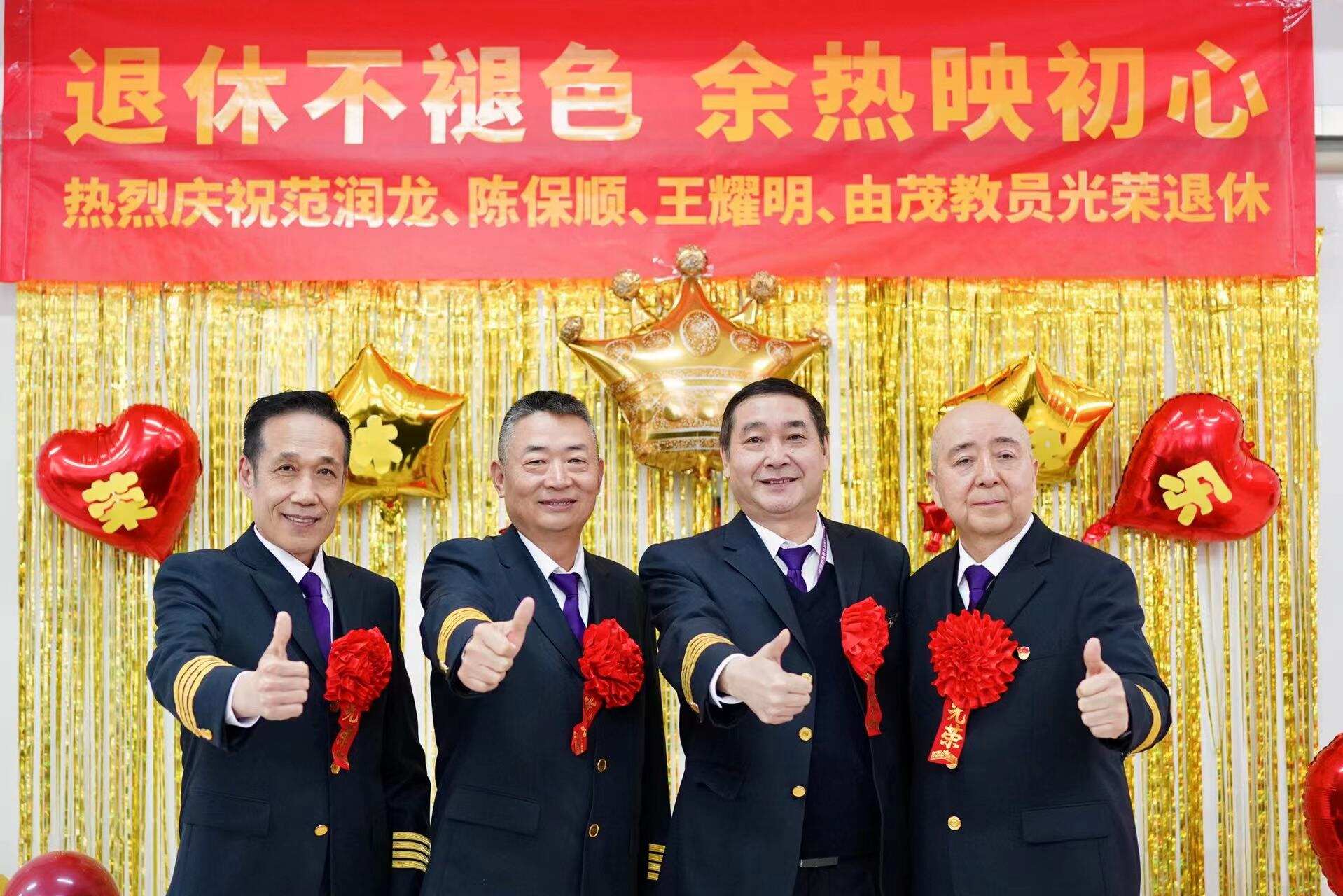 光荣退休的四位飞行教员,在兢兢业业保障航班任务的同时,始终坚持将自身丰富的飞行技能、知识和经验,通过言传身教毫无保留地传授给一批又一批的飞行学员。充分发挥“以师带徒,以强扶弱”的传帮带作用,责任与担当在飞行员队伍中得到了持续传承。通过他们的辛勤教导,加快了年轻飞行员的成长进步,从而构建了专业、和谐和稳定的飞行队伍。