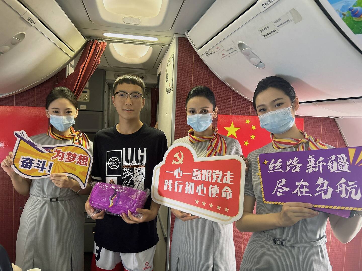 本次主题航班由乌鲁木齐航空“楼兰”乘务示范组党员乘务员进行保障。活动当天,乘务组早早登上了班机,对客舱进行了精心的布置,每位组员以最饱满的精神面貌迎接党的生日,也希望给旅客带来别样的乘机体验。