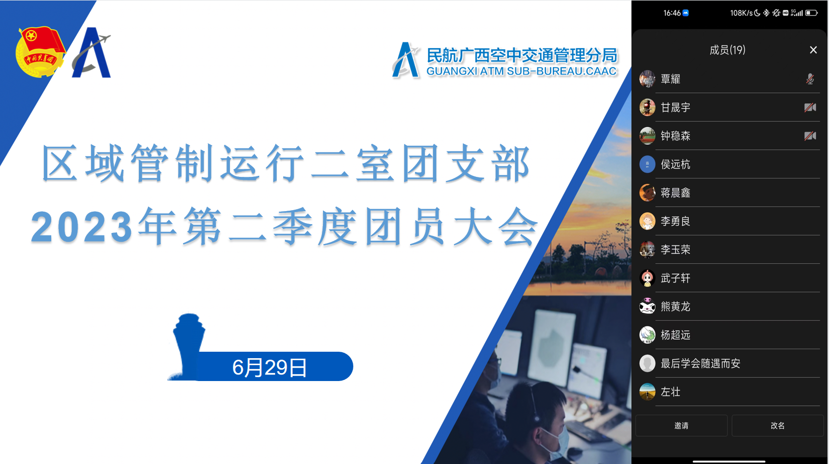 为进一步增强基层团组织的组织功能,提升团员队伍的政治素养和业务能力,广西空管分局区域管制运行二室团支部于6月29日召开第二季度团员大会,支部团员青年参加会议。