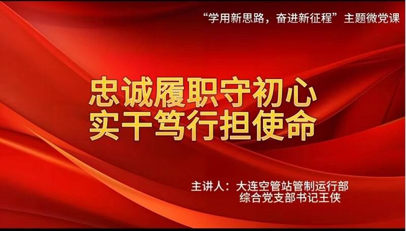通讯员王侠报道:为教育引领党员干部深刻领悟习近平新时代中国特色社会主义思想的真理力量和实践伟力,宣传展示主题教育阶段性成果,喜迎中国共产党成立102周年,根据上级党委的工作部署,大连空管站管制运行部综合党支部于6月29日开展了“学用新思想、奋进新征程”主题微党课活动。综合党支部书记王侠精心制作了题为“忠诚履职守初心 实干笃行担使命》的微党课视频,重点围绕习近平总书记关于民航工作、安全工作的重要论述和指示批示,紧密结合工作实际,用小故事讲明大道理,弘扬主旋律,传递正能量。党支部全体党员观看了微党课视频,并交流了心得体会。通过此次“学用新思想、奋进新征程”主题微党课活动,不断推动了主题教育走深走实,以实际成效保障主题教育落到实处。