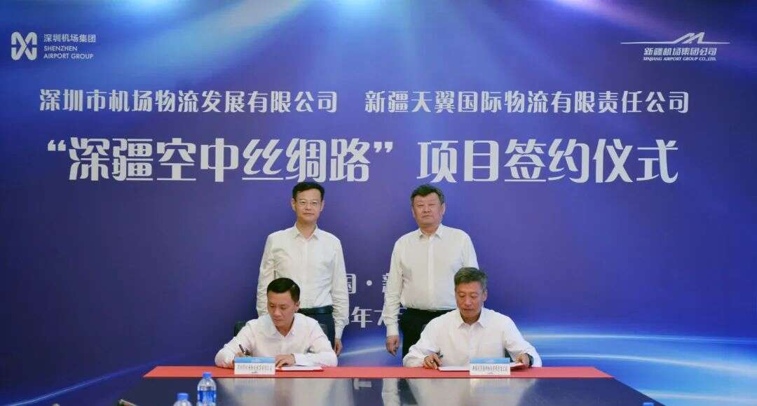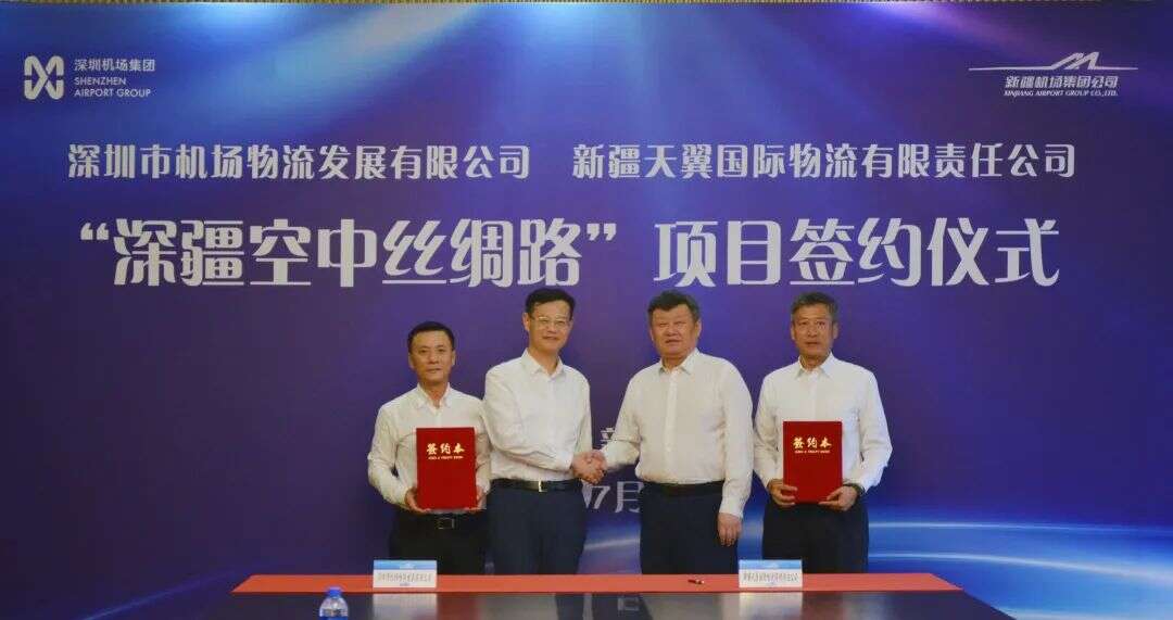 为深入推进“深疆空中丝绸路”项目,将航空与新疆特色优势产业有机结合,进而实现新疆特色产品快销快运,促进两地航空货运市场优势互补、深度融合。7月6日,新疆机场集团党委书记、董事长马伊磊与来访的深圳机场集团党委书记、董事长朱恩平一行举行座谈,并签署“深疆空中丝绸路”项目合作协议。机场集团总会计师韩华主持签约仪式,新疆机场集团和深圳机场集团相关负责同志出席签约仪式。