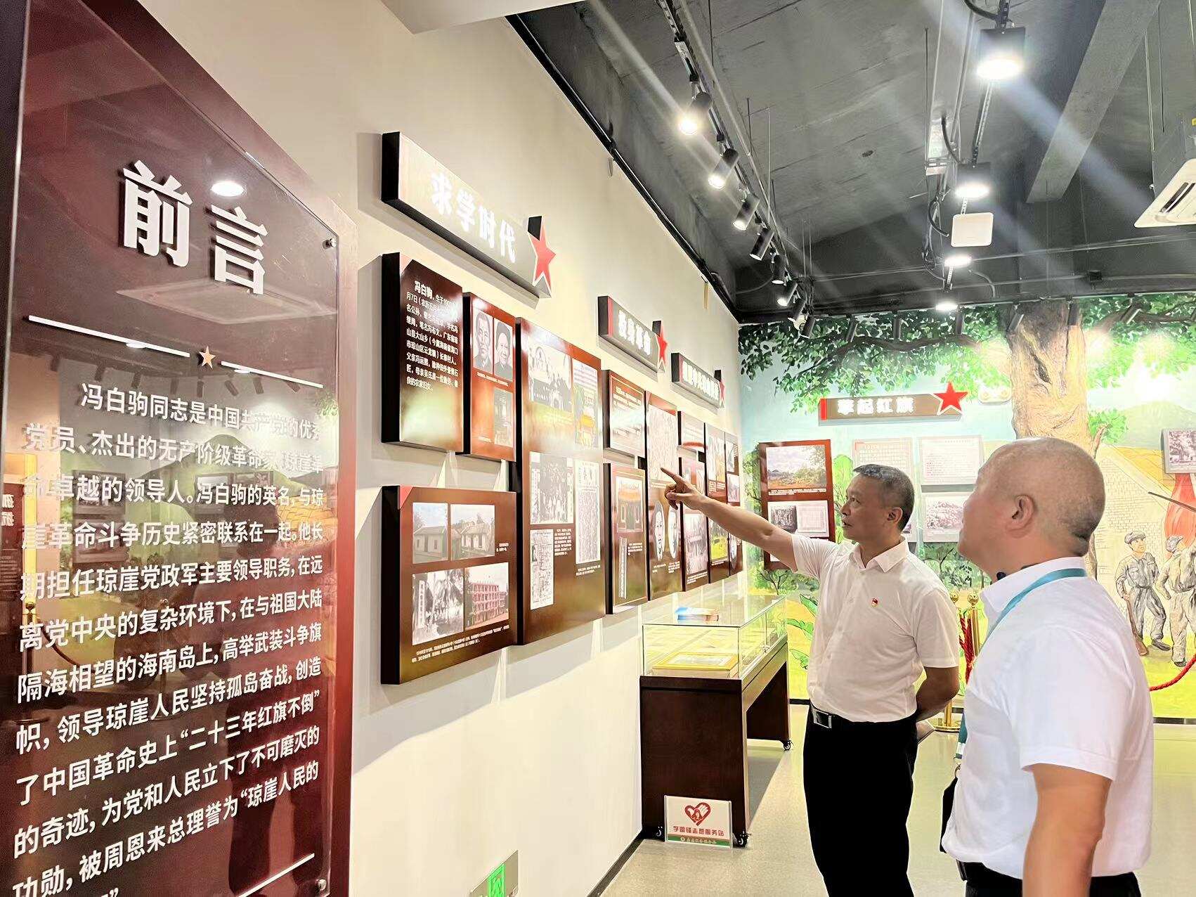 同志们先后来到琼崖工农红军云龙改编旧址展厅和冯白驹生平业绩陈列室等进行参观学习。丰富的图片资料和历史文物集中展现了冯白驹将军23年间的抗战史实和艰难历程,体现了革命先烈面对敌人的炮火勇往直前、义无反顾,用鲜血和生命谱写爱国主义壮歌的英勇事迹和崇高精神。党员们在参观过程中,仔细聆听讲解员的讲解,认真观看展示的图片、文物和资料,深刻感受到了革命先辈的英勇奋斗和崇高精神。透过冯白驹为琼崖革命、为人民幸福而奋斗的波澜壮阔的一生,深入学习感悟其革命精神和高尚品格,进一步加深了大家对琼崖革命精神内涵的理解,坚定了理想信念。