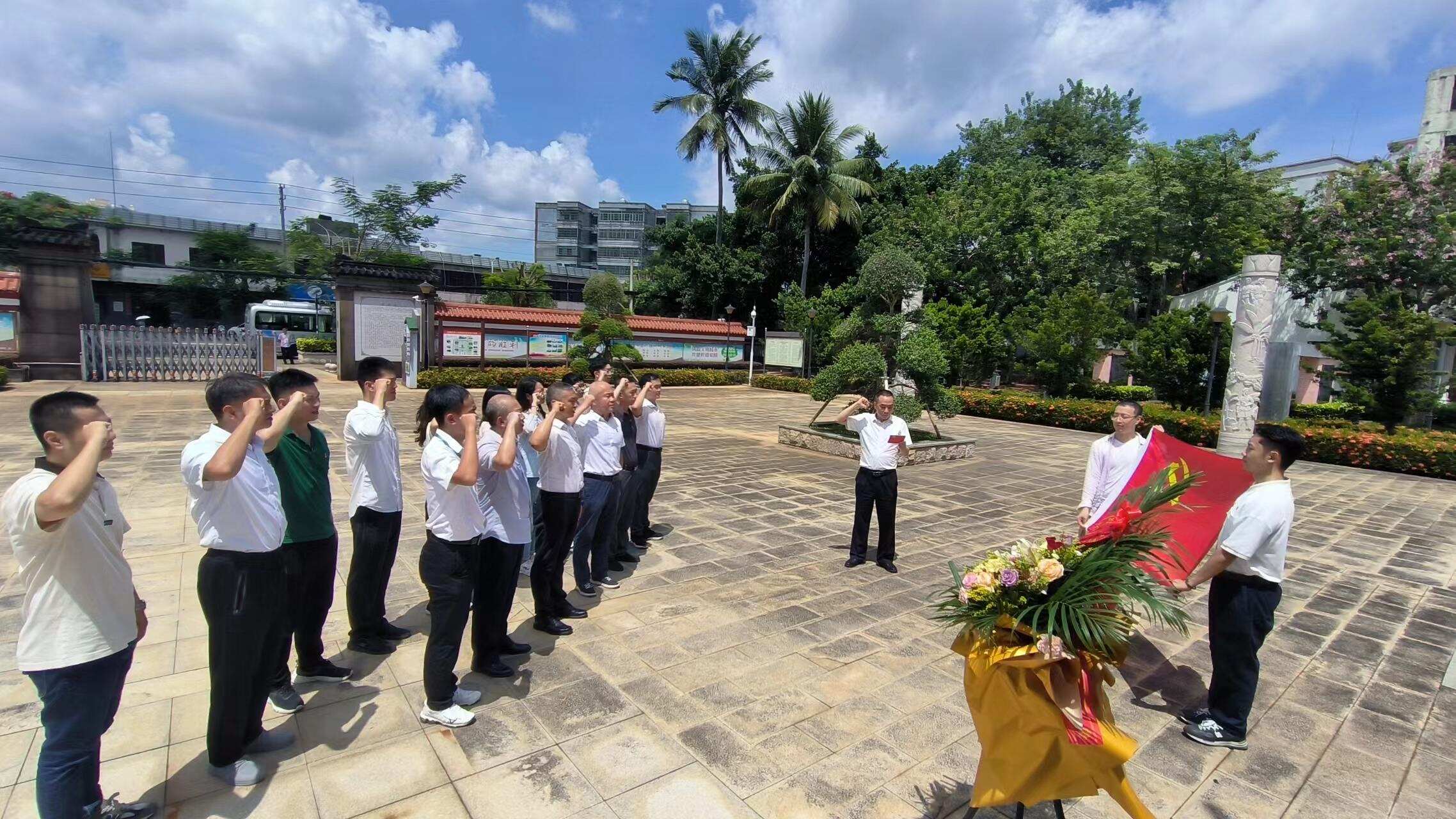 冯白驹是琼崖革命武装和根据地的创建人,是琼崖共产党人的杰出代表,领导琼崖革命斗争坚持二十三年红旗不倒,被誉为“琼崖人民的一面旗帜”。今年是冯白驹诞辰120周年。全体人员怀着无比崇敬之心,向冯白驹将军铜像敬献花篮、肃立鞠躬,向这位无产阶级革命家致以深情缅怀和崇高敬意,在冯白驹铜像前,面相党旗,重温了入党誓词。