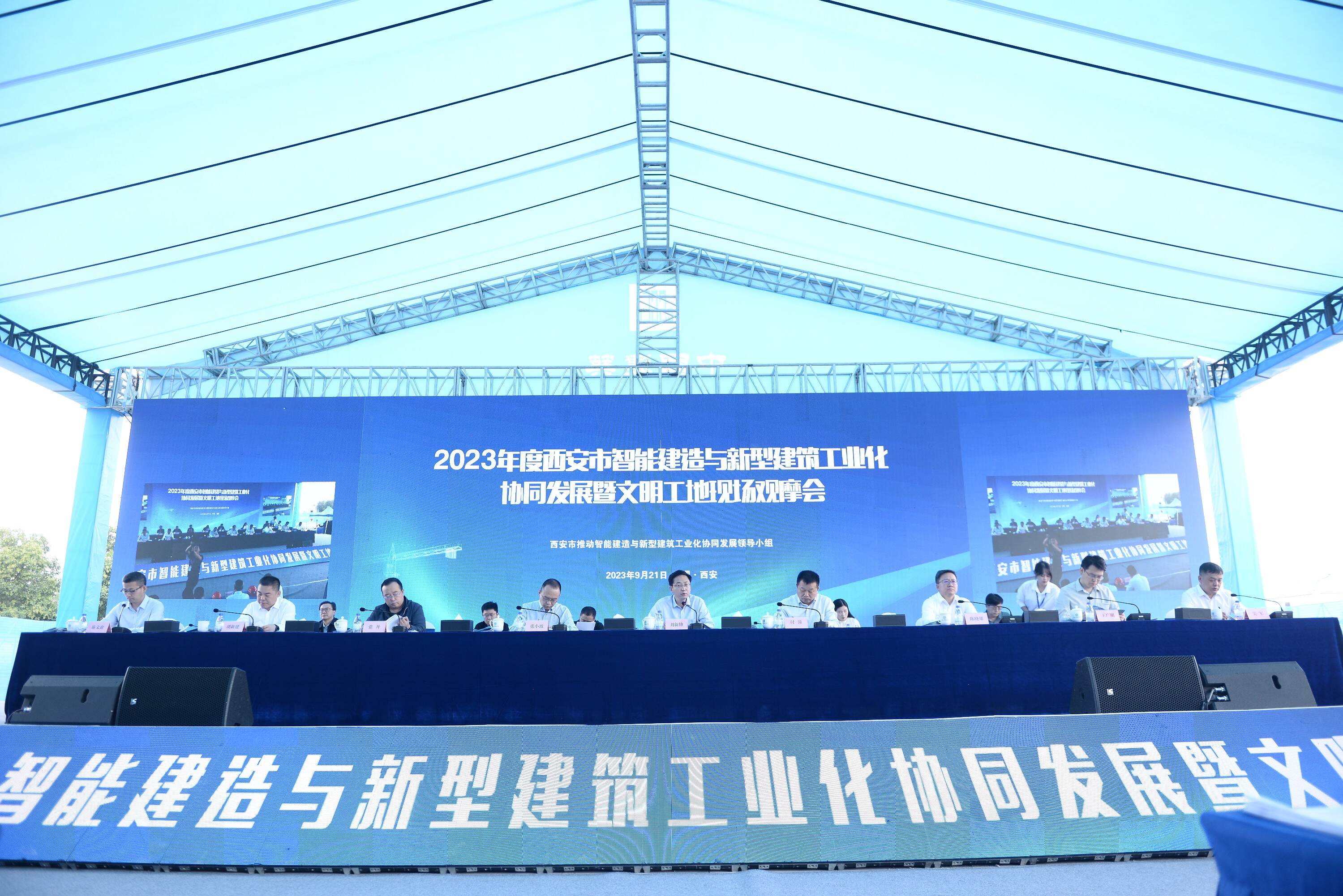9月21日上午,2023年西安市智能建造与新型建筑工业化协同发展暨文明工地现场观摩会在西安咸阳国际机场三期扩建空管工程空管运行保障基地工程现场召开。