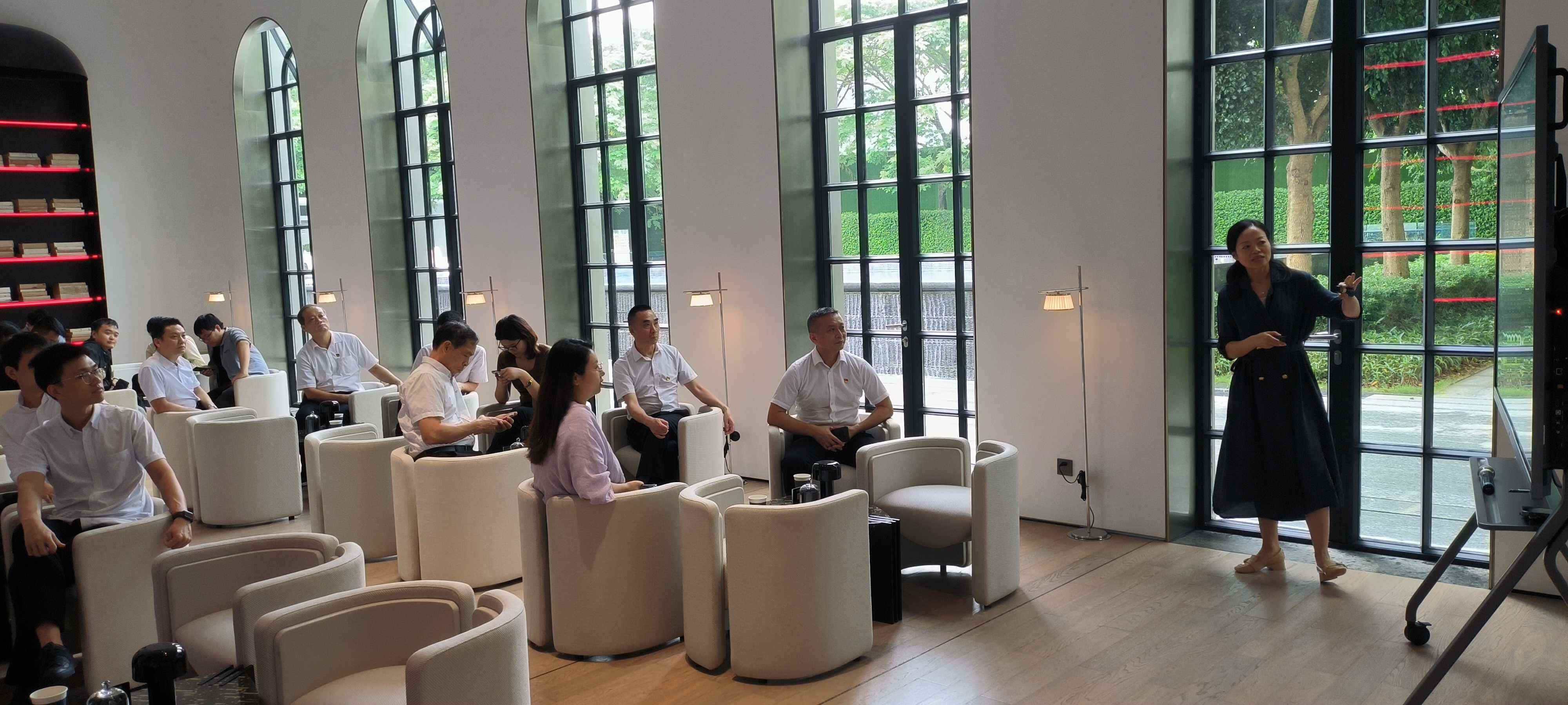 在园区党群服务中心,各基层党组织交流了党建促进业务发展的心得。同志们参观了沃克公园、iSchool 微城未来学校、云海吾乡文化中心、腾讯生态村等园区教育、文化、交通等公共服务设施,水榭亭台,鸟语花香,步道蜿蜒,知名互联网公司造型各异的办公楼坐落林间,学校、游泳馆、网球场、微城剧场、文化中心等设施一应俱全,一座花园式产业园区成为海南自贸港高质量发展“微名片”。